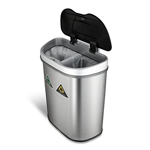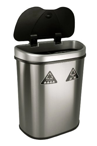 This 18 Gal. Recycling stainless steel is designed and engineered by Nine Stars the World's first legal patent holder. First innovative touchless design for recycling purpose, it can use it in any kitchen, office pantry room, cafeteria, restaurant and other recycling area. This recycle trashcan uses the most advance sensor technology can be found in all Nine Stars trashcans. As your hand or debris within ten inches and 130° angle from the infrared sensor, the lid will automatically opens. The lid will remain open if debris or hand remains within the range of the infrared sensor. Three seconds after your hand moves away from the lid, it closes automatically. Power lasts up to 6 months in normal daily usage. Required three D-